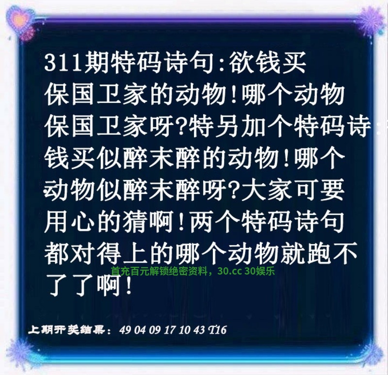 307期【鸡蛇羊兔】虎龙鼠】开狗20准